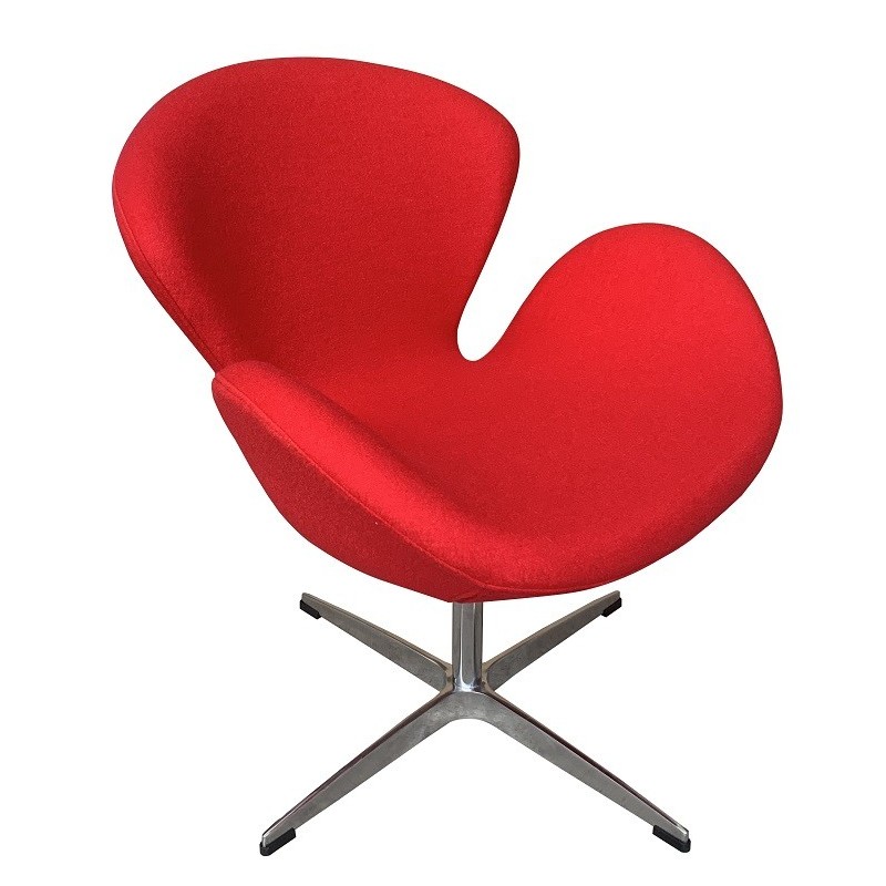 Sillón de diseño, giratorio, base de aluminio, tapizado en tejido cachemira rojo. Otros colores disponibles.